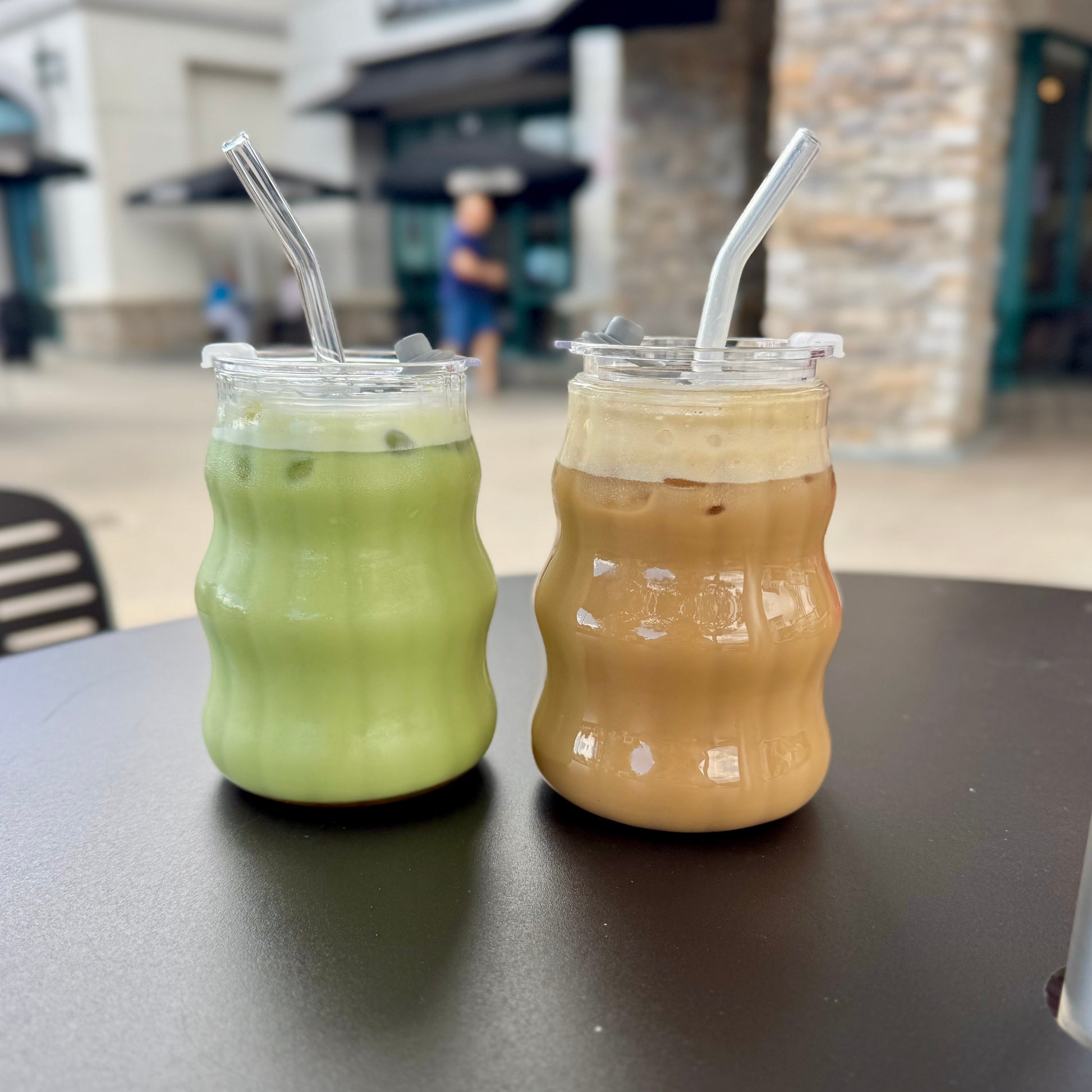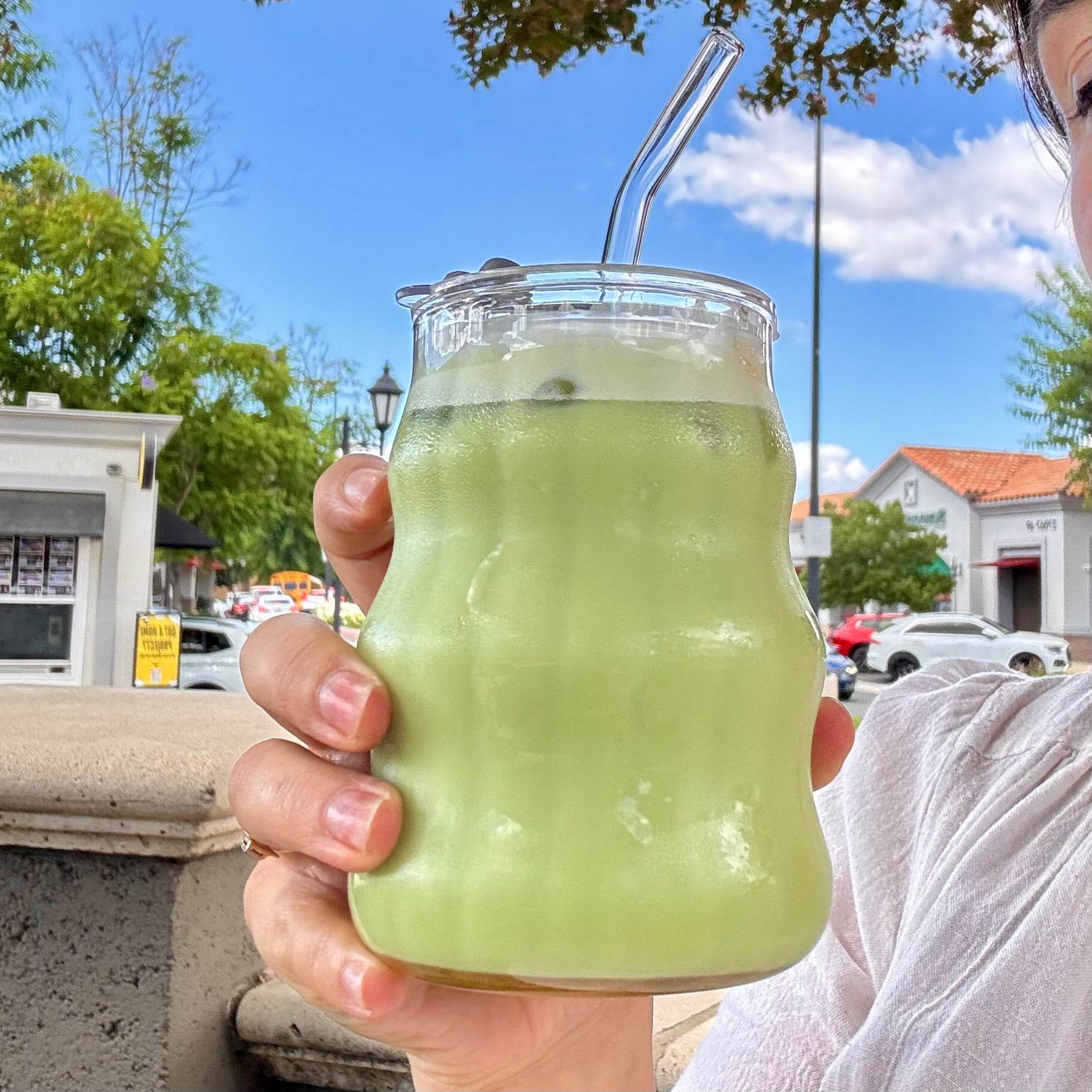 A minimal wavy glass cup designed for your daily matcha, iced latte, or tea.